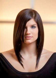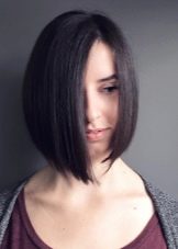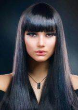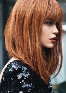 In many cases, it is even intentionally made in contrast - with short haircuts they use a very long bangs up to the chin to give a feminine look with a small total volume of hair, and with long hair often use a straight bang no longer than to the eyebrows.