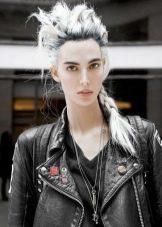 You can focus on styling medium hair precisely on negligence, which emphasizes the youthful character of the style. The girl in the fourth example did not resort to dyeing, she does not have a clearly visible bang, and the hairstyle is not short, but the solution can still be considered fashionable due to the ostentatious shaggy hair. A characteristic denim jacket with stripes shows that this woman is probably much more rebel in her soul than is evident from these photos, but certain circumstances require adherence to a semblance of norm.
