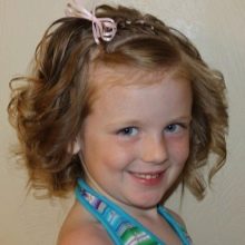 Beautiful children's styling that does not cause discomfort in the child. Ideal for babies of three years. The collected ponytails are not very tight. Each individual tail curls slightly with a curling iron.