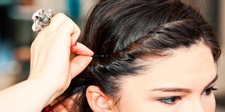 - On two sides, two identical parts of the hair are obtained, the curls on the back are fixed with a hairpin so as not to interfere.