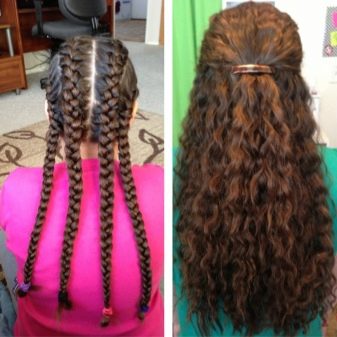 In the morning, waking up and unwinding the plaits, you will notice that the hair has acquired an unusual wave-like styling. After the hairstyle is ready, you can sprinkle it with a small amount of varnish.
