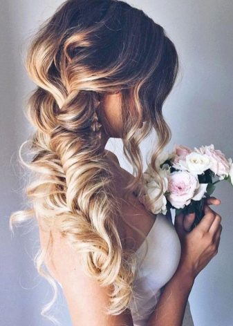 On a long and medium length, you can braid one tight braid by tilting your head down. Thus, the effect of light and natural styling will be obtained, which also gives volume to the hair, and to its owner - a special charm. Experiment and you will surely find the most suitable styling option for you using the braiding technique for the night.