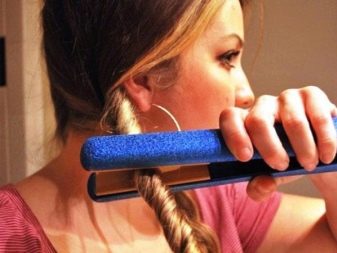 Another way to create small curls is to twist the strands into a tourniquet and warm them with a regular hair straightener, without a corrugated surface. Similarly, you can use any curling iron, but curls will be less expressive.