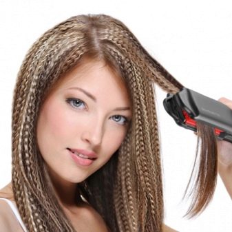 The corrugation iron allows you to curl small zigzag curls, but you need to work with small strands, which takes a lot of time, however, such wavy curls last for a long time (up to several days).