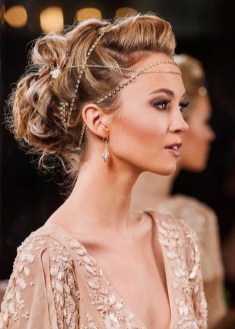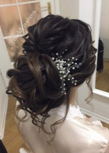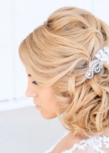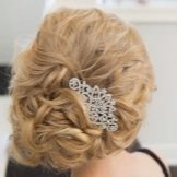 Using spectacular accessories, you can make a hairstyle for a celebration. This option is good for the graduation party, and for the wedding.