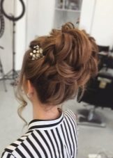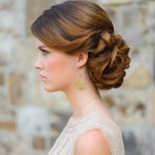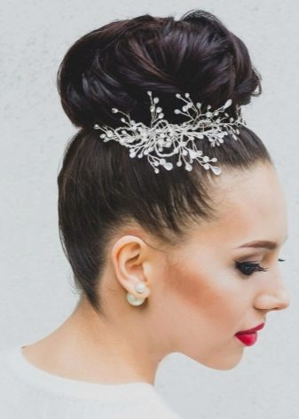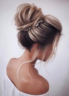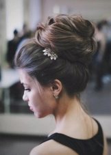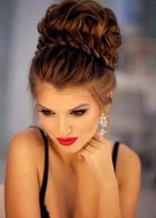 Such styling will turn a woman into a real queen. The main element of the "composition" is placed in the upper occipital area. Creating a beam does not take too much time.