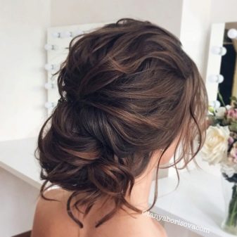 Thanks to a bunch of curls, it is possible to create a stunningly beautiful image of the bride. Although this hairstyle is a godsend for the prom, and for a corporate event, and for a romantic date.