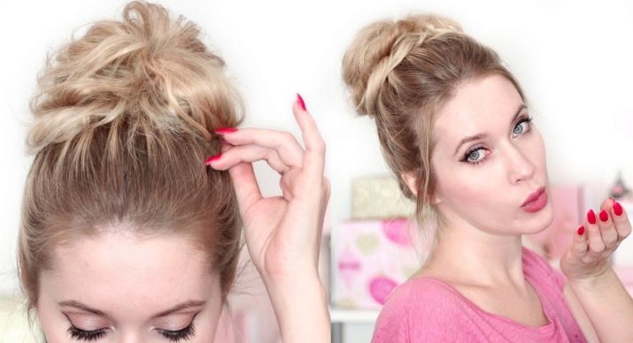 Hairstyle in the form of a bun on hair of different lengths is popular with the fair sex of all ages. Bundles of curls that look especially impressive in combination with beautiful evening dresses will suit romantic natures. Although at work, laying of this type to the place.