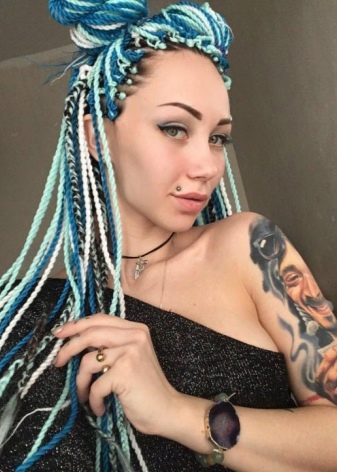 Rolled hair strands are a serious step. It is impossible to weave and comb, it is impossible to give your hair the same state. You only have to cut it, or rather, shave it bald.For this reason, many do not dare to join the ranks of dreadlock fans, but there is a solution. Artificial, mostly kanekalonny strands are sold inexpensively, they are equipped with special clamps. You can buy multi-colored artificial dreadlocks and try to weave them in real hair.