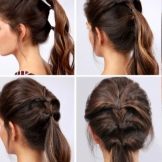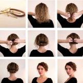 - We use one elastic band and several hairpins for fastening. Following the steps step by step, as indicated in the picture, collect and tie a small ponytail at the ends of the hair. Then turn it inward and secure it with studs, carefully picking up the fallen curls. Fix the hairstyle with varnish.