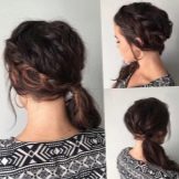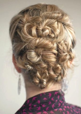 - continue this way until the end of the hair, gently pull out the locks of hair, creating a volume, fix the hairdo with varnish.
