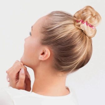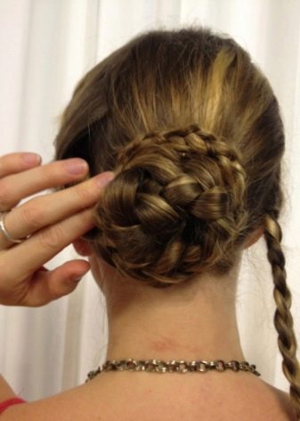 Spread your hair evenly over it and put on an elastic band over it, make 2 braids or plaits from the remaining hair. Use them to hide the elastic band by wrapping and stitching the hairpins. A collapsible bagel or twist-pin has a similar principle of twisting, you need to curl your hair moving up. Connect the ends, fastening them, fix a pair of pins.