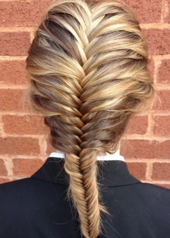 This weaving can be done not only all over the head, but also up to half, on one side or from the bottom, then just collecting all the hair in a ponytail.