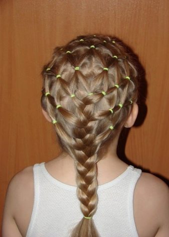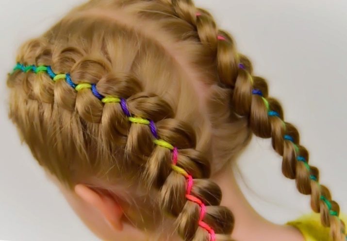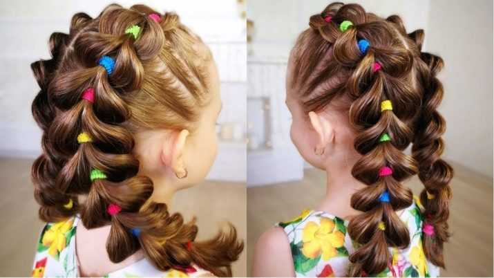It became popular to make hairstyles for little girls when using a large number of colored rubber bands. To start, comb the child’s hair and take it while weaving, for example, watching cartoons. Consider quick options for creating simple hairstyles.