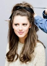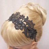 Using the same principle, we transform the low tail into an elegant styling. It is advisable to take a lace accessory. Tie it around the head according to the rim principle. Make a knot under the shock. Wrap the curls crosswise to the bottom. Finish with a bow. Such an image will be remembered for a long time.