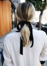 A simple and interesting option can be created using a tape product. Such an object on a high tail will add dynamism to the chosen style. A similar accessory with a low tail completes the business image. It looks concise and elegant.