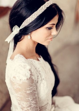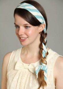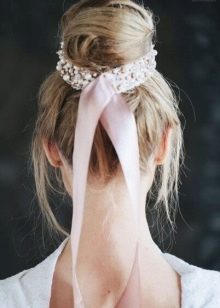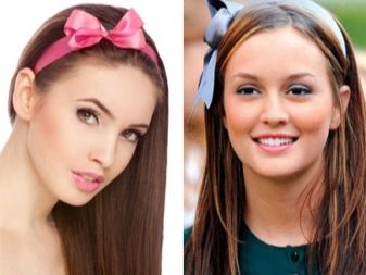 - If you use thin ribbons, they should be tied above the forehead. Such models can not keep a hairstyle, therefore, invisible and other attributes are used to maintain the design.