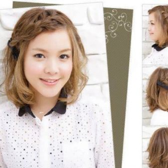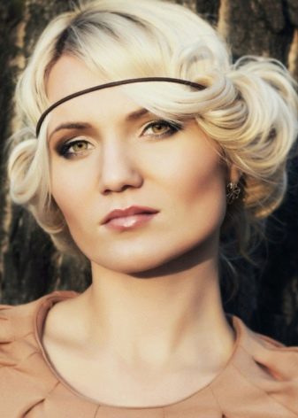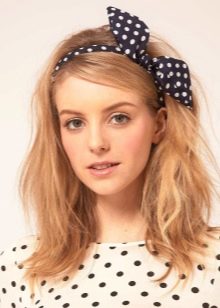 On short haircuts, ribbon products look interesting and harmoniously emphasize the outfit. If you give styling an additional mess with the help of mousse, you can achieve the effect of lightness and ease. This creates volume and added charm.
