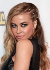 - Braided pigtails need to be laid along the temple. It is advisable to carefully hide the ends of the braids under the curls and fix them with the help of invisibility.