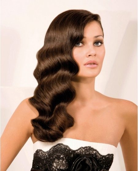 The appearance of the final hairstyle with curls laid to one side largely depends on the immediate length of the ladies' hair. In addition, the width of the curl should be determined by its length: the longer the hair is, the thinner the strand you need to choose for curling.