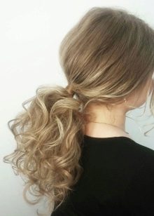 - Wrap the tail using a curling iron of medium diameter, or pick up the locks and make a neat bundle of them.