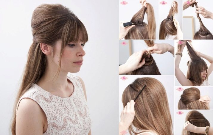 Bouffant will make the hairstyle more voluminous and noticeable. In the case of combined hairstyles, the remaining strands in the lower part will need to be processed using a curling iron or tongs. Curls should be curled to the middle of the length to get a more attractive result.