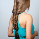 - Low tail with volume at the base and two strands twisted together will be easy to do on long thick hair.