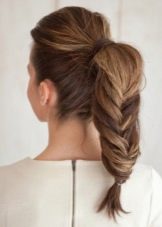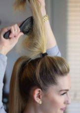 - For those whose daily activities are active, a velvet tail at the back of your head is a great idea. It looks much more stylish than a regular tail and is suitable for beginners to practice creating their own styling. Part of the hair must be separated from the total mass and fixed to the crown. From the remaining strands, make a tail on the back of the head. After that, comb the curls on the crown so that the strands do not break out, and wrap their lower part around the base of the tail, with invisible pins.