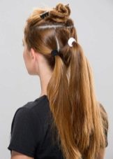 - Repeat this procedure. 5 or 6 times depending on the thickness of the hair, placing in a row several tails of the same thickness.