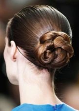 - A bunch usually created on the basis of a ponytail, it can also be located on the top or bottom, depending on individual preferences and hair length. The tail strands should be twisted into a bundle, and then wrapped around the base and secured with studs. If desired, instead of a tourniquet, you can braid an ordinary braid or even a fish tail, giving the beam an unusual relief.