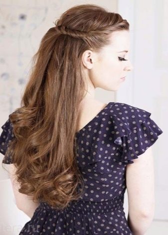 - Instead of headbands and dressings, you can braid a braid, framing the head at the back and sides. It should not be tight, but rather, on the contrary, a little voluminous.