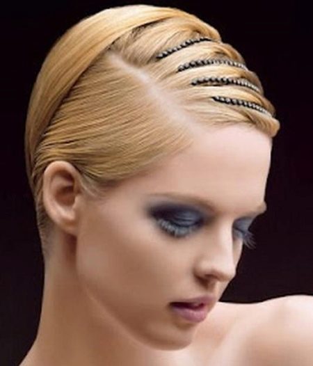 - Ultra short hair can be laid in an original way, using a special mousse to help emphasize the asymmetry and texture of the strands. Also, various hairpins and headbands that can transform even ordinary mischievous curls created by a curling iron on short hair will be appropriate.