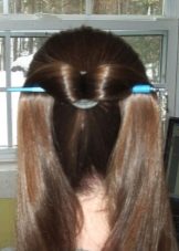 - Visually divide all hair into 3 parts: right, left and top (already removed).