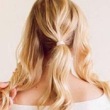 - Carefully comb the hair and collect in the tail approximately in the middle of the head.