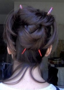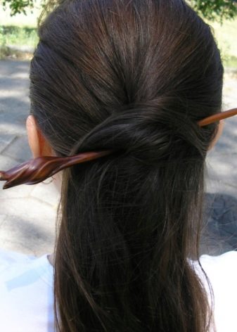 - To strengthen the hairstyle and give it oriental shades, we supplement it with one decorative Chinese wand. Our hairstyle is ready. It remains to comb the remaining hair.