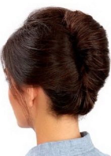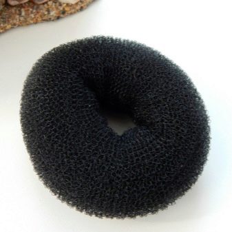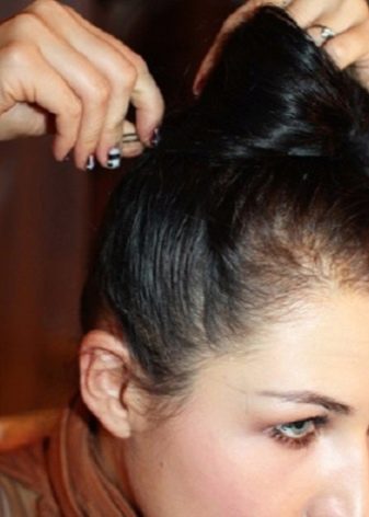 - Our hairstyle is located on the back of the head. We comb the hair there without leaving a parting. To give volume on the crown, we put a special sponge there.