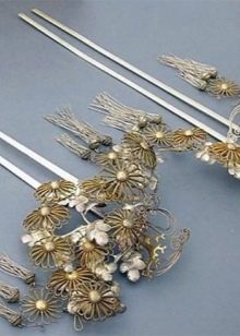 - You can decorate such a hairstyle with chopsticks with pendants and strings of pearls.