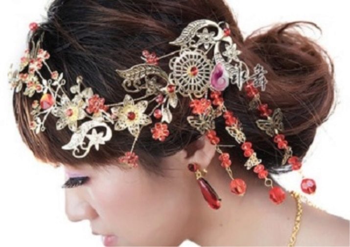 As a rule, part of the hair remained uncleaned. Hairstyles with hair removed are traditionally complemented by years. The basis of modern hairstyles in the Chinese style, you can take a braid, bun or 2 buns. The main emphasis in this case is on rich jewelry. But do not overburden your hair with stones so that the girl is comfortable.
