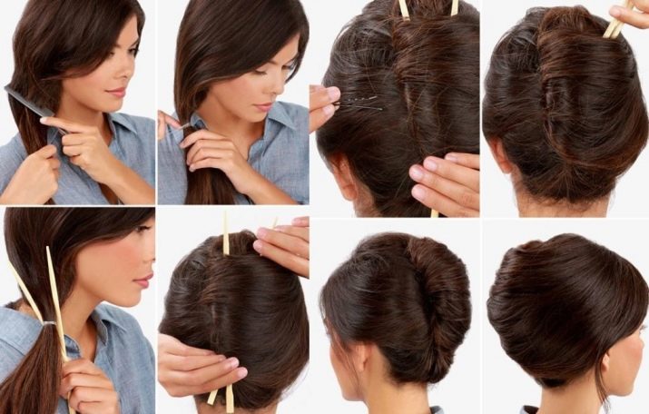 - We take 2 Chinese sticks and collect the entire tail by wrapping. To do this, grab the tip of the tail with your chopsticks, like a clip, and curl your hair. Make sure that you get an elongated roller. If everything is done correctly, then the roller will lie in place of the tail.