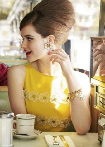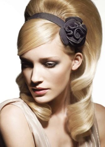 What is meant by the era of dudes? This is the period from the mid-1950s to the mid-1960s. At that time, hair styling was one of the most important components of the female image. Curls and locks were laid in intricate designs above the forehead, on the top of the head, on the back of the head, depending on the hairstyle chosen. Today, such compositions are suitable for the office (though without a strict dress code), and for a party.