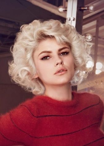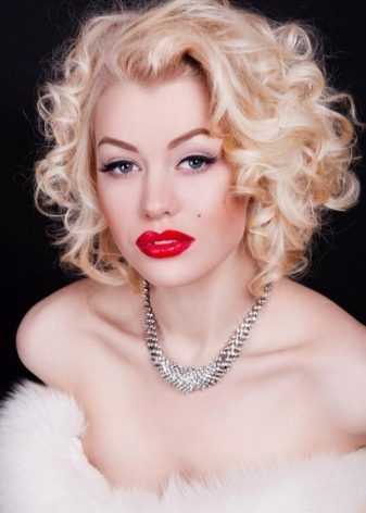 At this length, Marilyn Monroe's hairstyle will also look great. To make curls that have become a kind of "brand name" of this style icon, you need curling irons, invisible hair clips, and a fixative. Hair should be divided into 4 parts: frontal, middle and two side. First you need to curl the strands on the frontal part: each in a tight curl, securing it with invisibility. After that, hair in the middle part is frizzled in the same way.