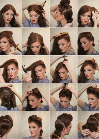 Since retro hairstyles in style are incredibly popular among pin-up fans, there are more than enough instructions on how to make them at home on the Internet. Guided by them, you can step-by-step create any, even the most complex-looking styling.