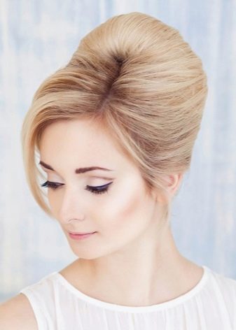 From hair longer than the shoulder blades, a wonderful “babette” is obtained. You don’t even have to comb it very much, because due to the length and amount of hair the hairstyle will have the desired volume. If the hair is heavy, thick, you need to take care of a good fixing tool and a large number of studs.
