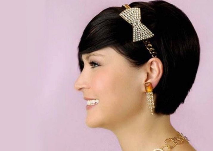 A styled hairstyle is often decorated with a ribbon, scarf or rim. In most cases, this is one element that combines color scheme with an outfit. For short hair styling A ribbon or hoop is an essential element that softens the sharpness of an image and gives it additional femininity.