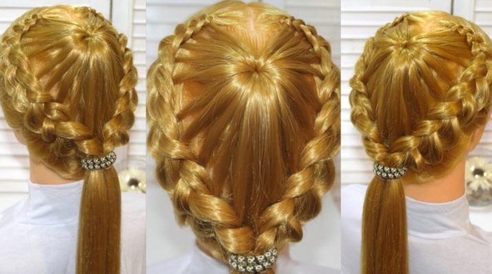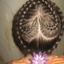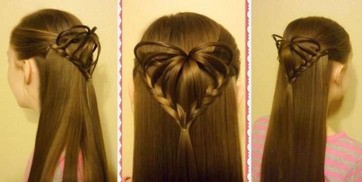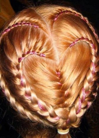 The technique of weaving braids in the form of a heart is shown in the next video.
