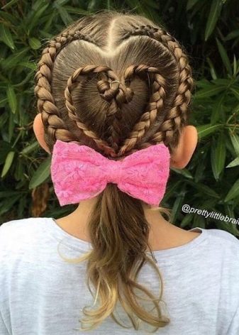 These braids are ideal for all women, from small to large. Weaving a braid “heart” is possible in everyday life, and if you add various decorations, it is perfect for a holiday.It can be braided in kindergarten, for study, a date. The main thing is that all the elements of the image are combined with each other.