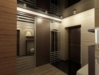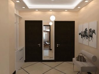 The organization of the lighting system is very important for the hallway, as it has no windows. If the room is small, one chandelier and sconce or lamp in the area of the cabinet may be enough.In a large room, it is necessary to organize lighting of all zones. Spotlights in a stretch fabric, located around the perimeter - a good solution. Mirror surfaces, gloss will bring more light into the room.
