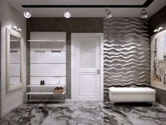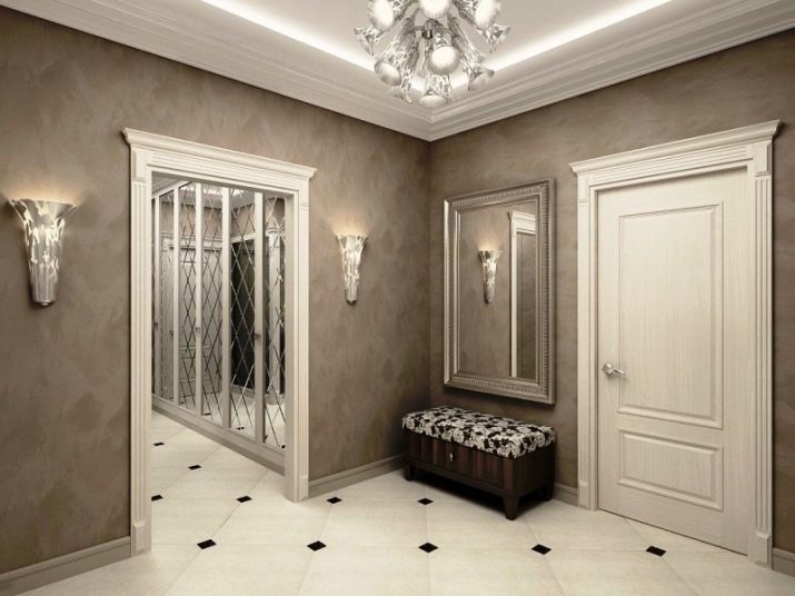 If we are not talking about the design of the hallway in a country house, then most often this room is rather small in size. In any case, the abundance of mirror surfaces, gloss and light shades in the design will visually increase the space. Besides, no need to clutter up the hallway with furniture, even if its area is large enough. And ideally, it is better to do with a minimum of necessary items.