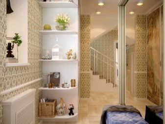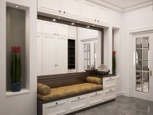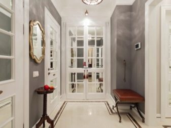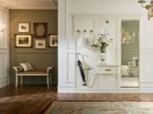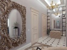 The corridor is furnished taking into account its area. A mirror should be an indispensable element of the interior. If you prefer the option with a frame, then note that the frame should be rich. Gilding, carving, inlaid with rare woods - all this must certainly be present. Such a product is a real work of art. It not only gives a touch of luxury and chic, but also makes the hallway lighter and visually increases the space. The mirror can also be built into the cabinet.