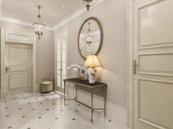 The design of the hallway in the neoclassical style is a harmonious combination of the trends of classicism and modern trends. It is safe to say that this area will never lose relevance.